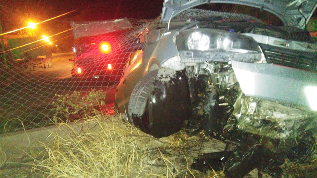 El grave accidente vial se dio este lunes por la madrugada en la intersección de las calles Niño Alcalde y Portezuelo de la Capital riojana Donde un auto VW Voyage a alta velocidad se incrustó contra el cerco perimetral del Hospital Vera Barros.