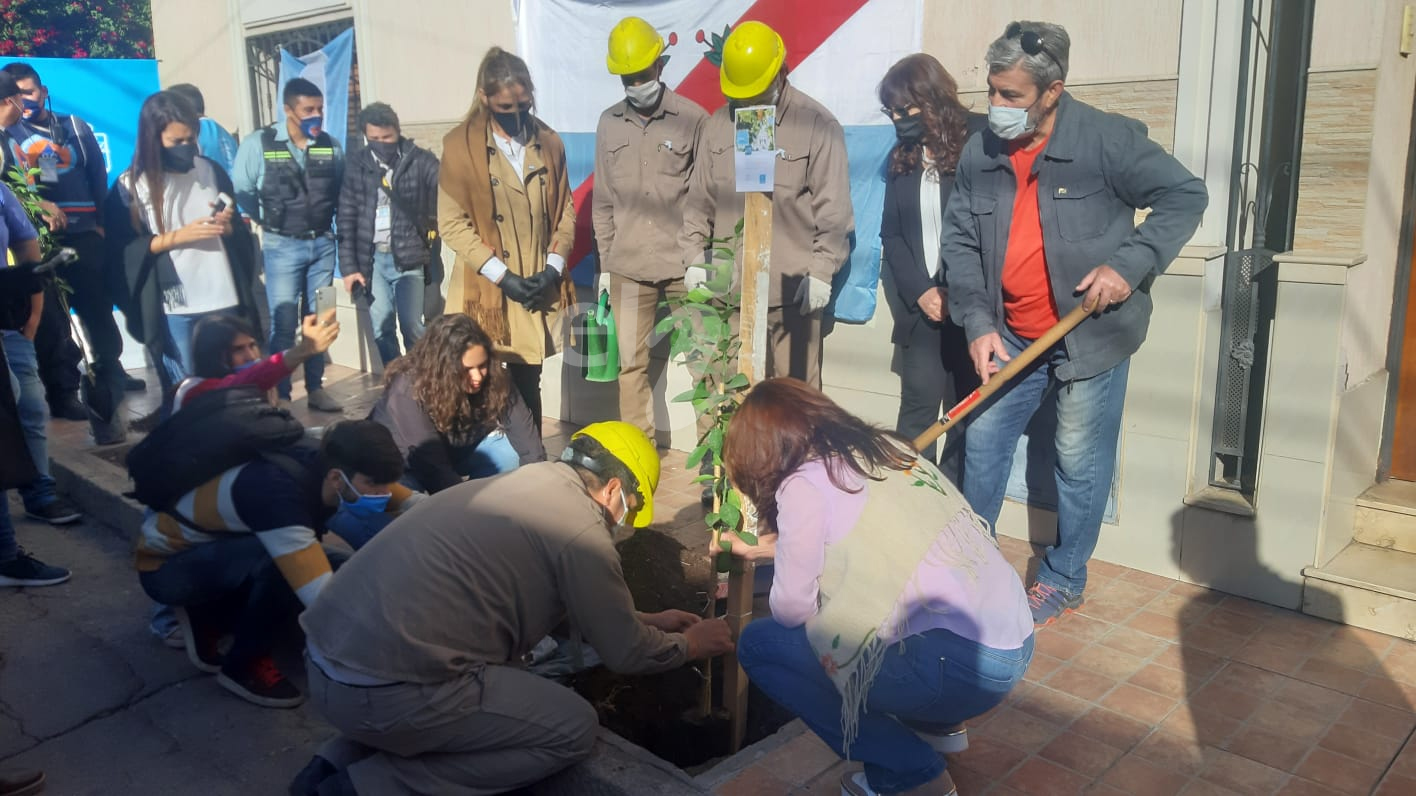 En el marco del plan de arbolado y en un nuevo aniversario de la Rioja, la municipalidad capitalina plantó arboles de naranjo en calles d...