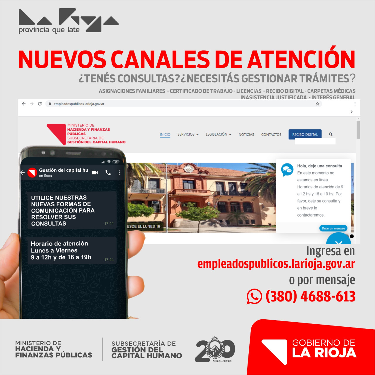El Gobierno habilita nuevos canales de comunicación para empleados estatales que deban realizar distintos trámites