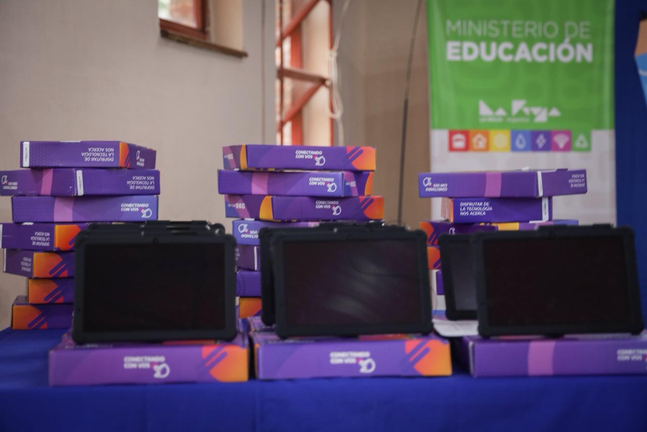 El gobernador Ricardo Quintela encabezó el acto en la Escuela N.º 396 Caudillos Riojanos. Se entregaron 631 tablets que serán distribuidas en 102 instituciones que integran la red “Rosaritos en R...